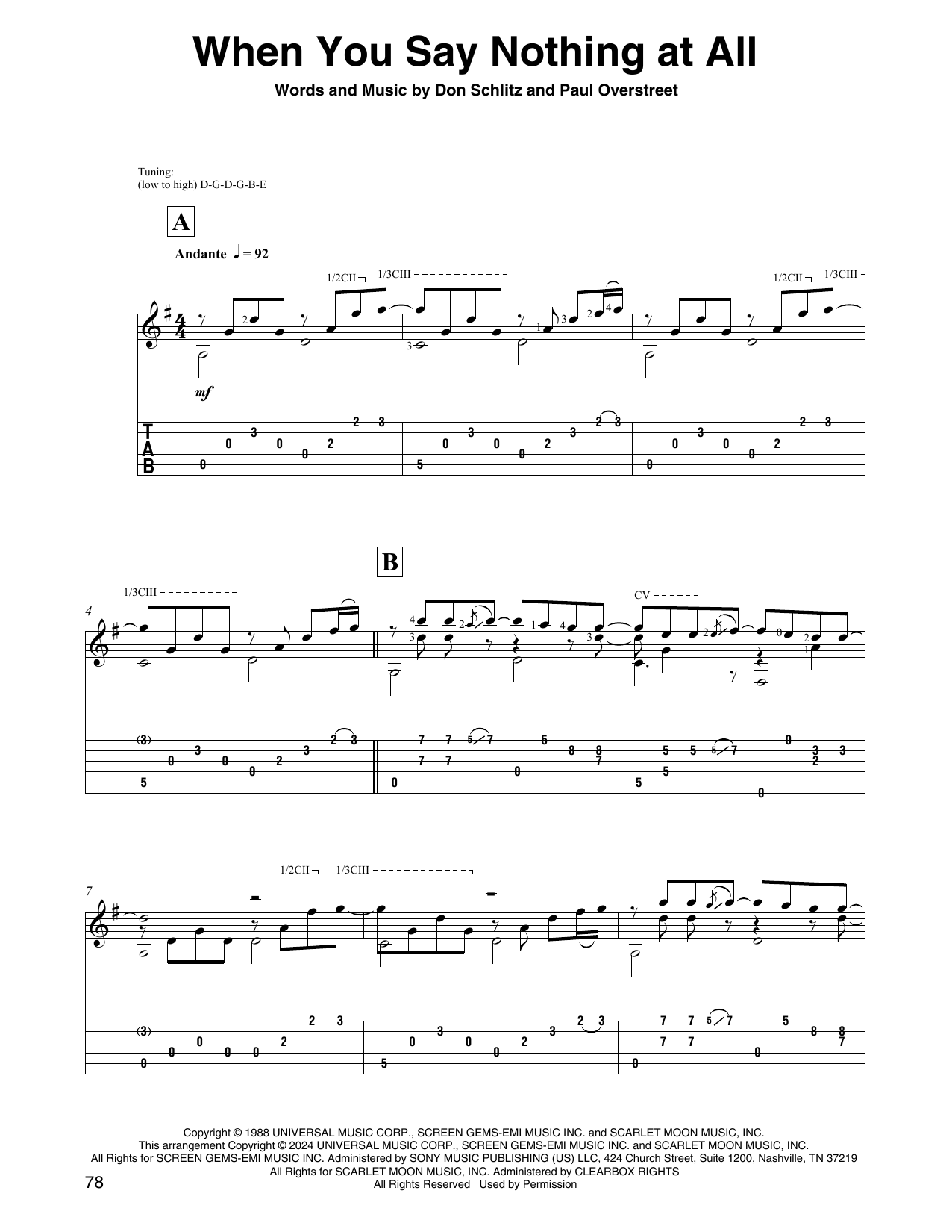 Download or print Keith Whitley When You Say Nothing At All (arr. David Jaggs) sheet music, chords and digital score arranged for Solo Guitar. This Pop score includes 6 page(s).