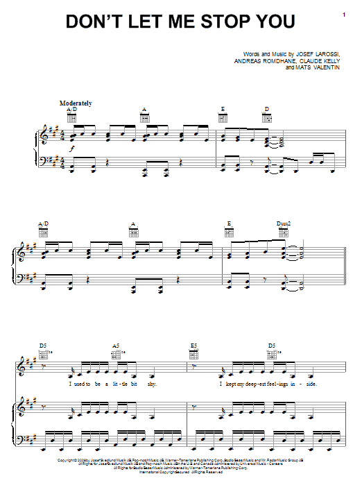 Download or print Kelly Clarkson Don't Let Me Stop You sheet music, chords and digital score arranged for Piano, Vocal & Guitar Chords (Right-Hand Melody). This Pop score includes 7 page(s).