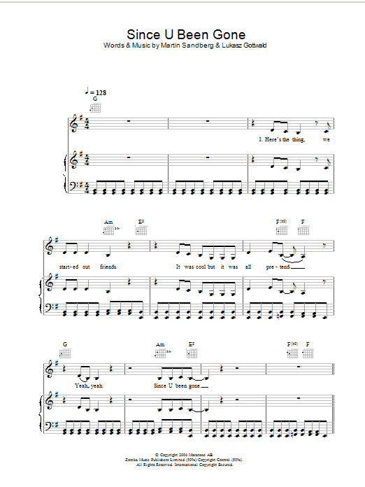Quick facts Since U Been Gone about digital sheet music