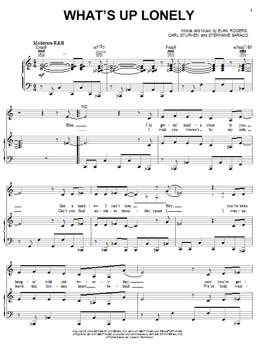 Download or print Kelly Clarkson What's Up Lonely sheet music, chords and digital score arranged for Piano, Vocal & Guitar Chords (Right-Hand Melody). This Pop score includes 7 page(s).