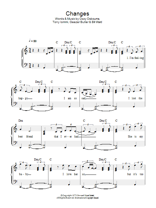 Download or print Kelly & Ozzy Osbourne Changes sheet music, chords and digital score arranged for Easy Piano. This Pop score includes 5 page(s).