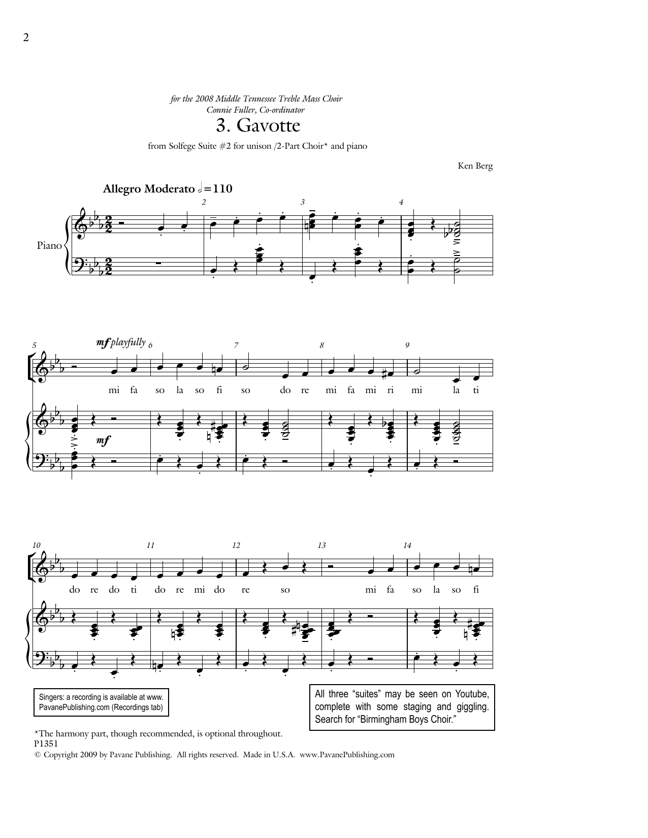 Download or print Ken Berg Gavotte (from "Solfege Suite #2") sheet music, chords and digital score arranged for Unison Choir. This Concert score includes 7 page(s).