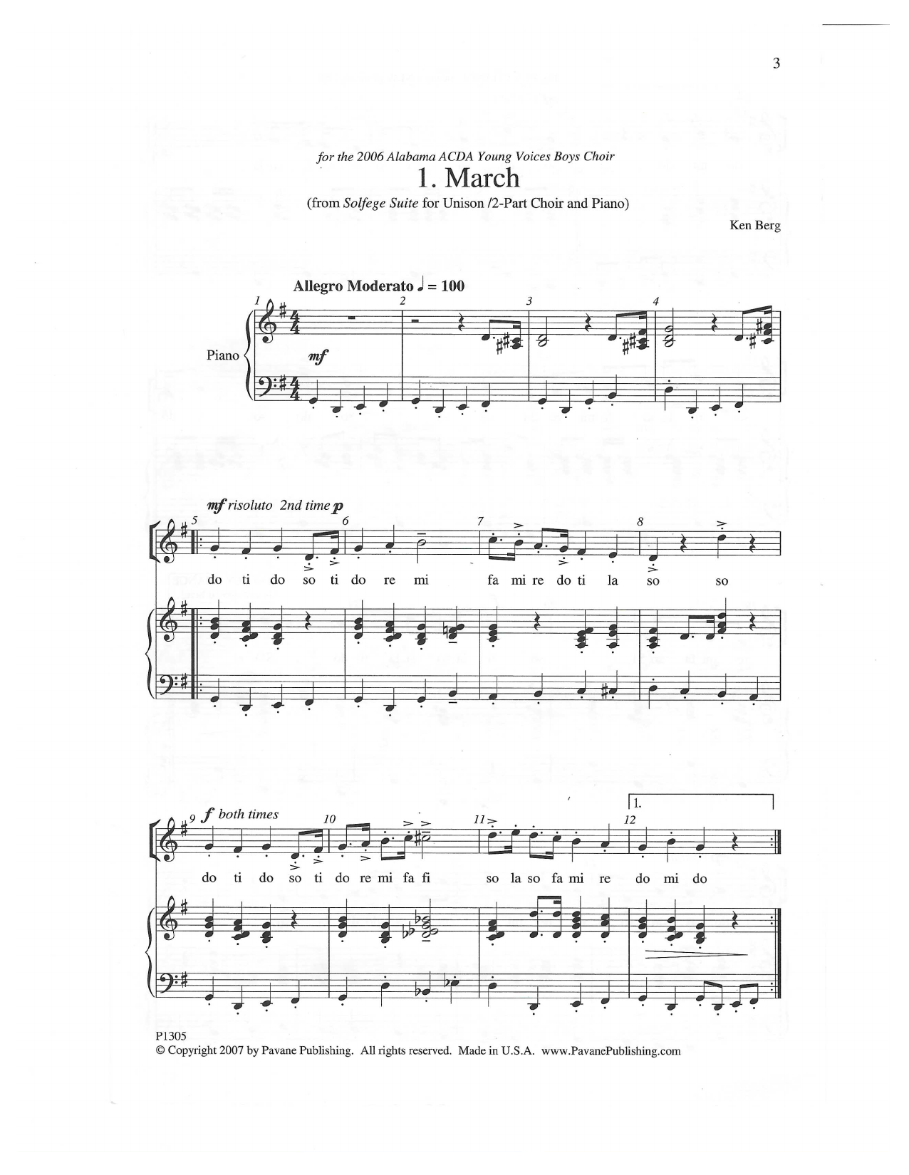 Download or print Ken Berg March (from "Solfege Suite") sheet music, chords and digital score arranged for Unison Choir. This Concert score includes 6 page(s).