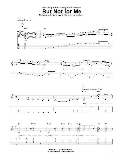 Download or print Kenny Burrell But Not For Me sheet music, chords and digital score arranged for Guitar Tab. This Jazz score includes 6 page(s).