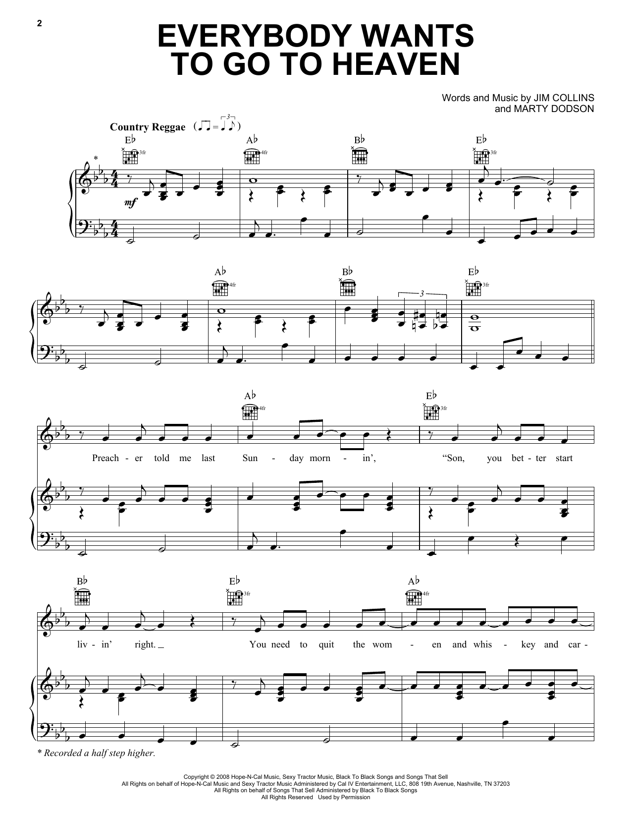 Download or print Kenny Chesney Everybody Wants To Go To Heaven sheet music, chords and digital score arranged for Piano, Vocal & Guitar Chords (Right-Hand Melody). This Country score includes 7 page(s).