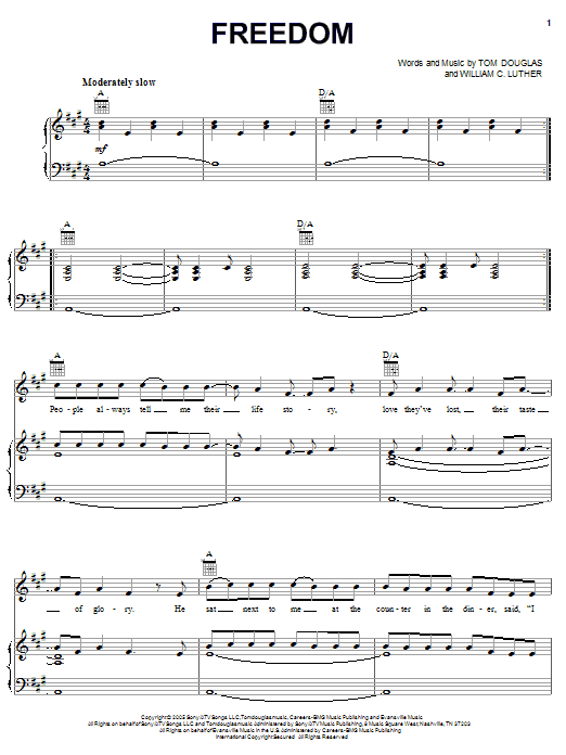 Download or print Kenny Chesney Freedom sheet music, chords and digital score arranged for Piano, Vocal & Guitar Chords (Right-Hand Melody). This Country score includes 10 page(s).