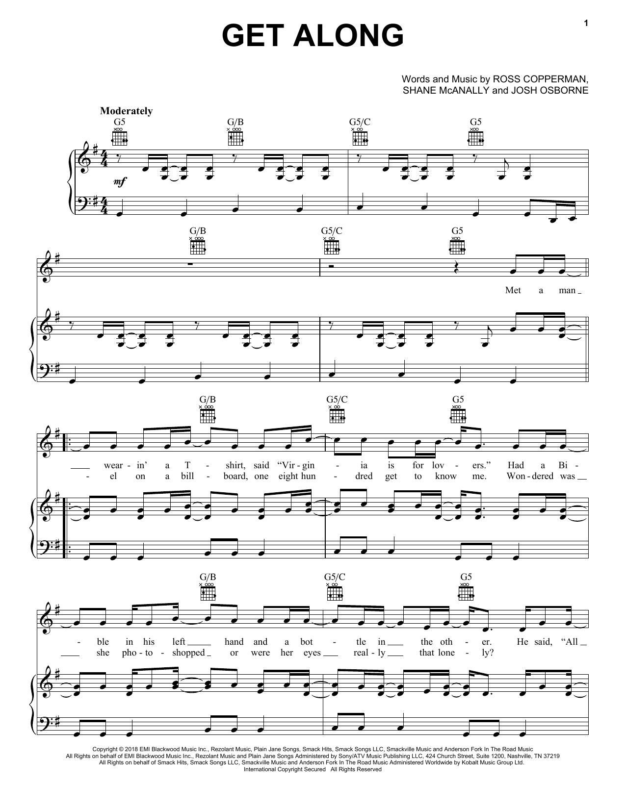 Download or print Kenny Chesney Get Along sheet music, chords and digital score arranged for Piano, Vocal & Guitar Chords (Right-Hand Melody). This Pop score includes 5 page(s).