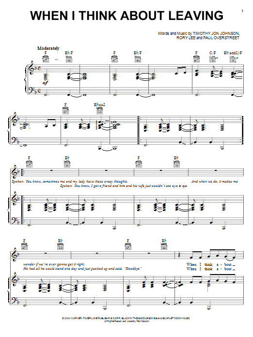 Download or print Kenny Chesney When I Think About Leaving sheet music, chords and digital score arranged for Piano, Vocal & Guitar Chords (Right-Hand Melody). This Country score includes 6 page(s).