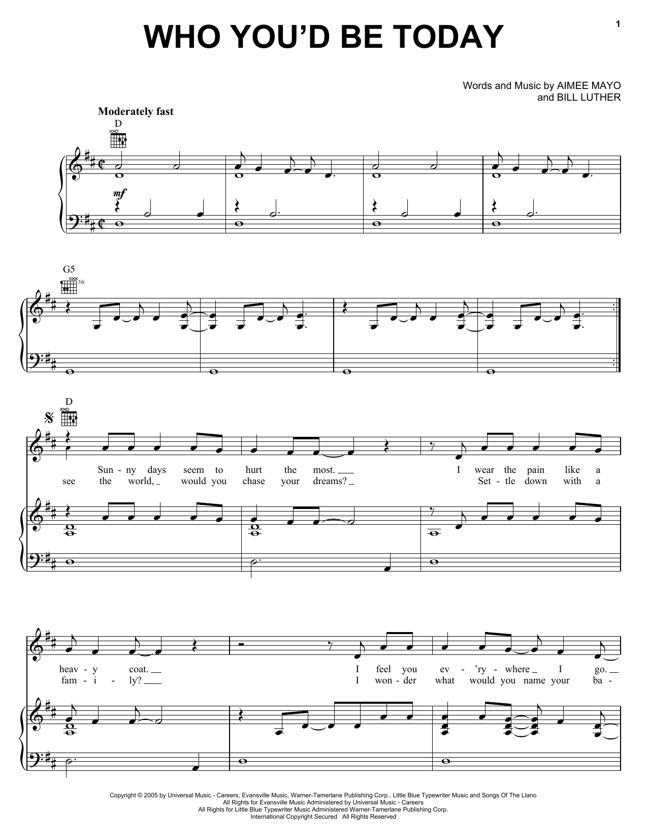 Download or print Kenny Chesney Who You'd Be Today sheet music, chords and digital score arranged for Piano, Vocal & Guitar Chords (Right-Hand Melody). This Country score includes 7 page(s).