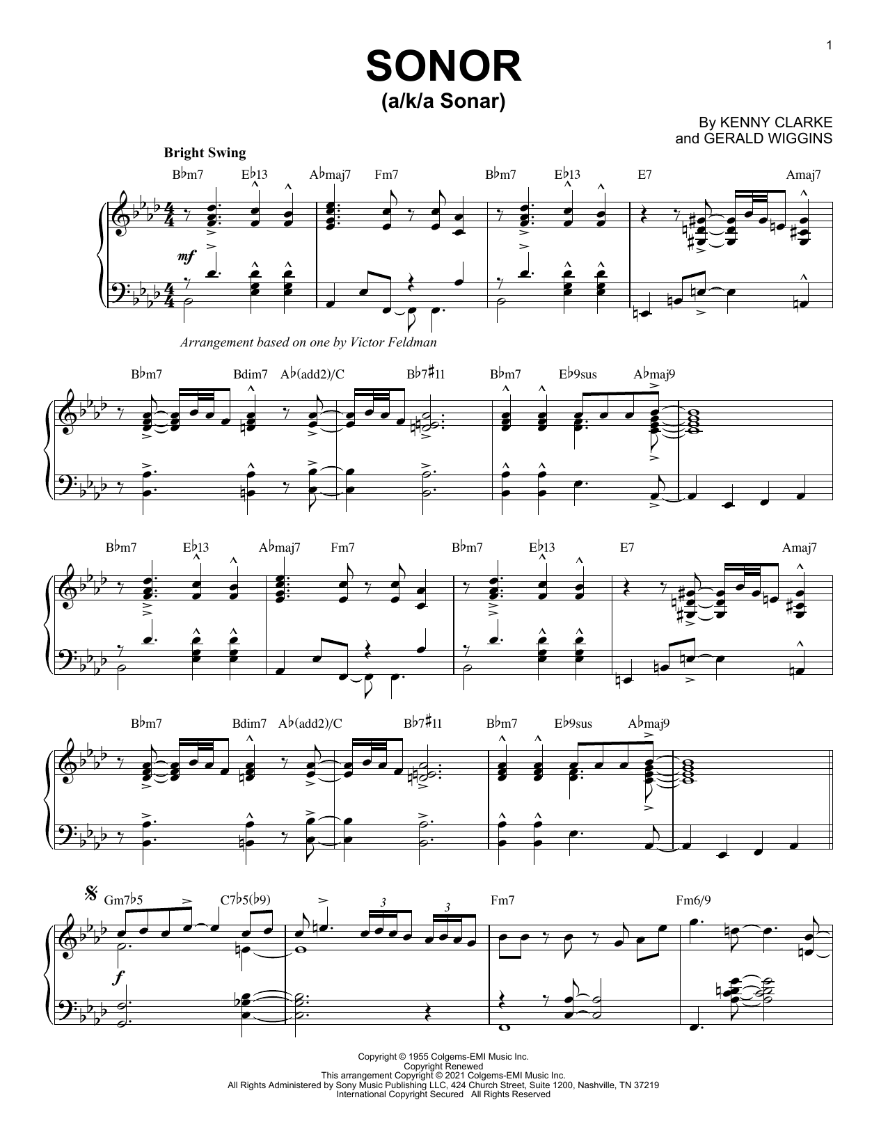 Download or print Kenny Clarke Sonor [Jazz version] (arr. Brent Edstrom) sheet music, chords and digital score arranged for Piano Solo. This Jazz score includes 4 page(s).