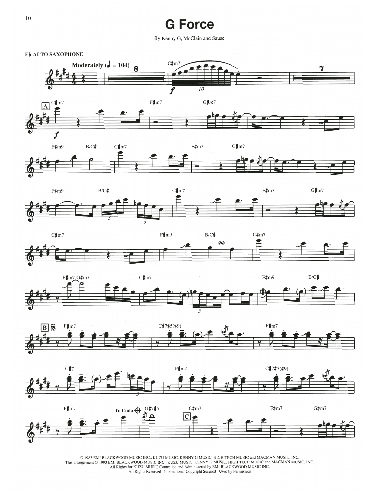Download or print Kenny G G Force sheet music, chords and digital score arranged for Alto Sax Transcription. This Jazz score includes 4 page(s).