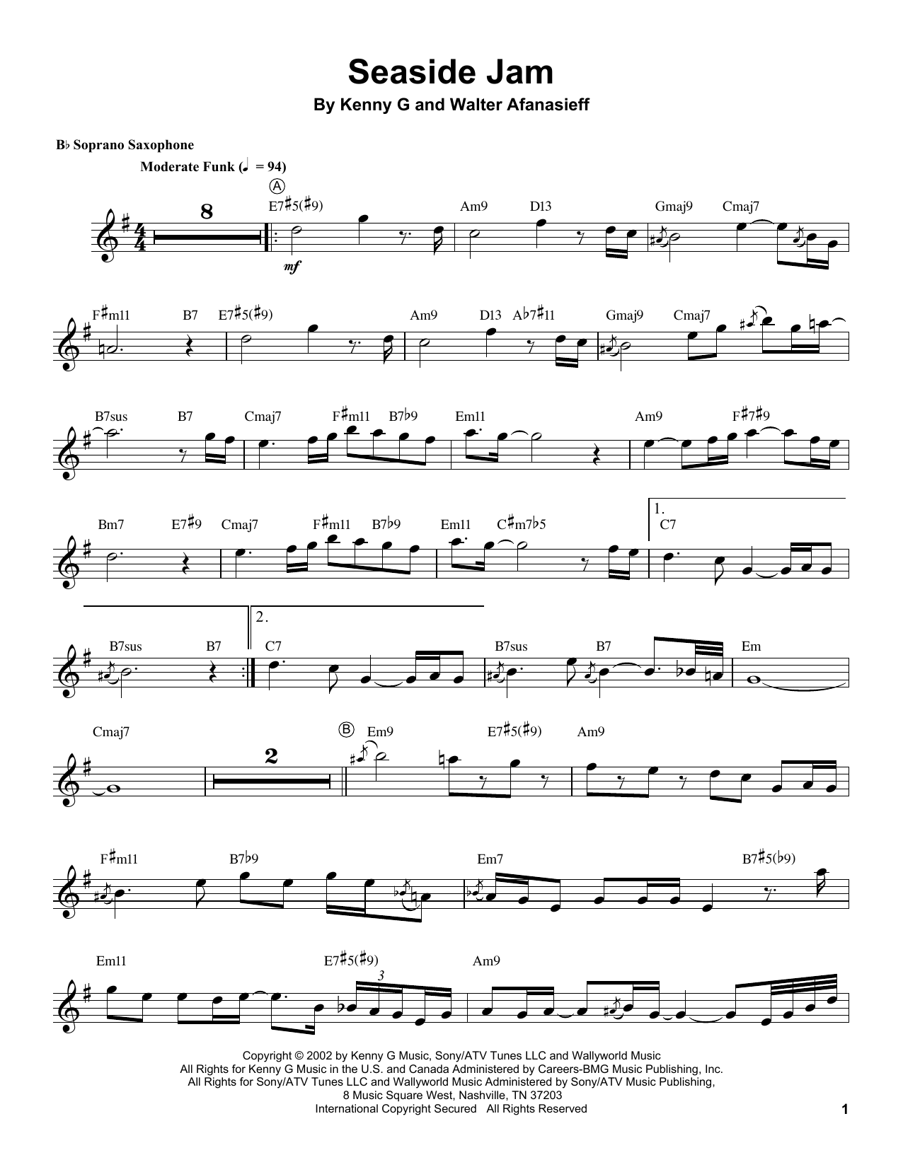 Download or print Kenny G Seaside Jam sheet music, chords and digital score arranged for Soprano Sax Transcription. This New Age score includes 4 page(s).