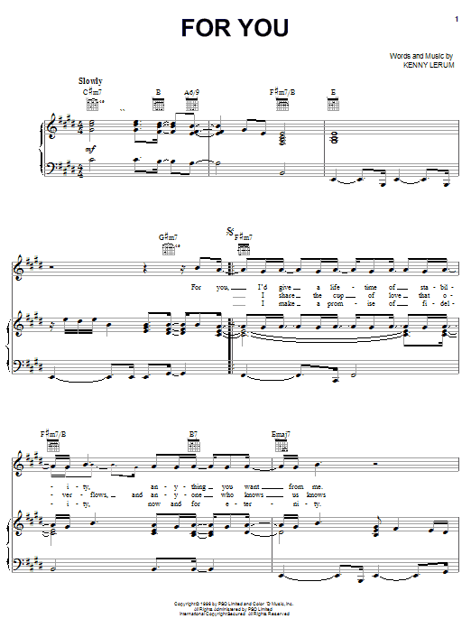 Download or print Kenny Lerum For You sheet music, chords and digital score arranged for Piano, Vocal & Guitar Chords (Right-Hand Melody). This Pop score includes 5 page(s).