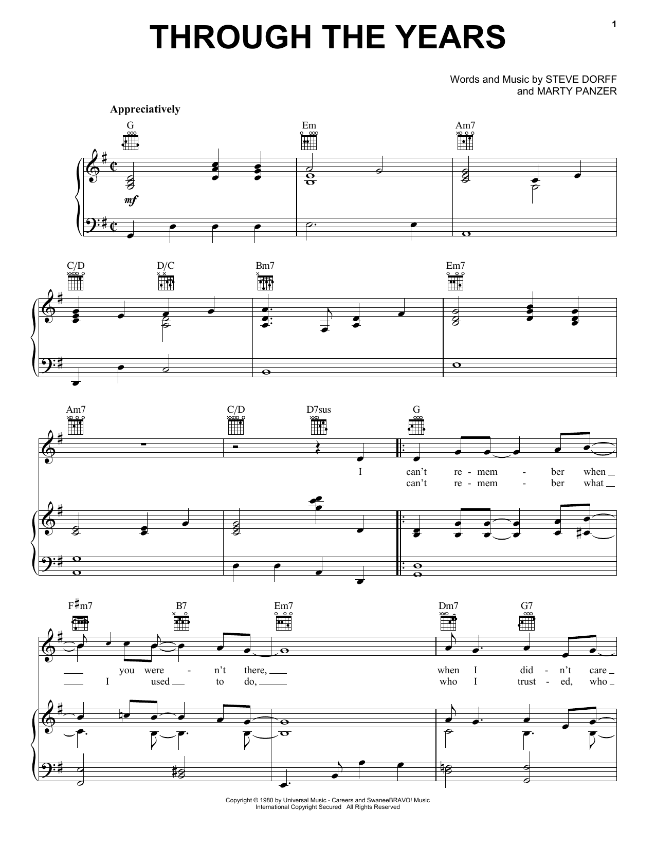 Quick facts Through The Years about digital sheet music