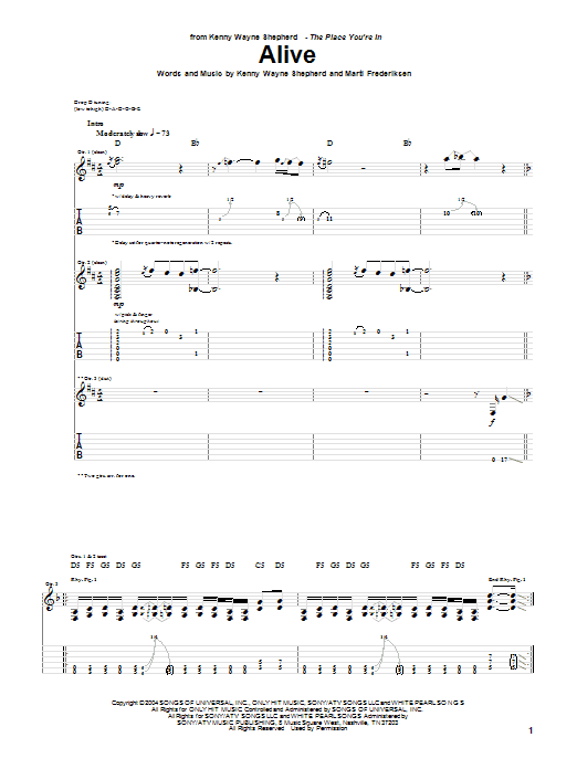 Download or print Kenny Wayne Shepherd Alive sheet music, chords and digital score arranged for Guitar Tab. This Blues score includes 7 page(s).