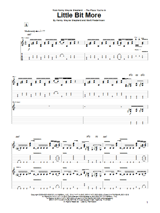 Download or print Kenny Wayne Shepherd Little Bit More sheet music, chords and digital score arranged for Guitar Tab. This Blues score includes 11 page(s).