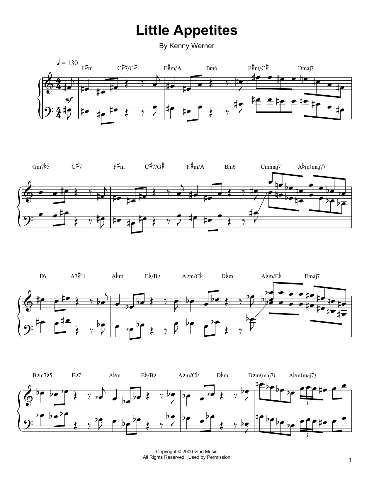 Download or print Kenny Werner Little Appetites sheet music, chords and digital score arranged for Piano Transcription. This Jazz score includes 11 page(s).