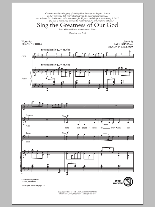 Download or print Kenon D. Renfrow Sing The Greatness Of Our God sheet music, chords and digital score arranged for SATB Choir. This Concert score includes 2 page(s).