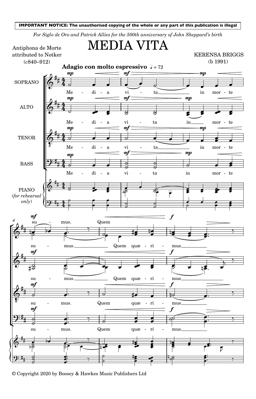 Download or print Kerensa Briggs Media vita sheet music, chords and digital score arranged for SSAATTBB Choir. This Concert score includes 6 page(s).