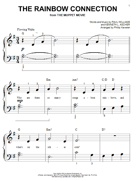 Download or print Kermit The Frog The Rainbow Connection (arr. Phillip Keveren) sheet music, chords and digital score arranged for Big Note Piano. This Children score includes 3 page(s).