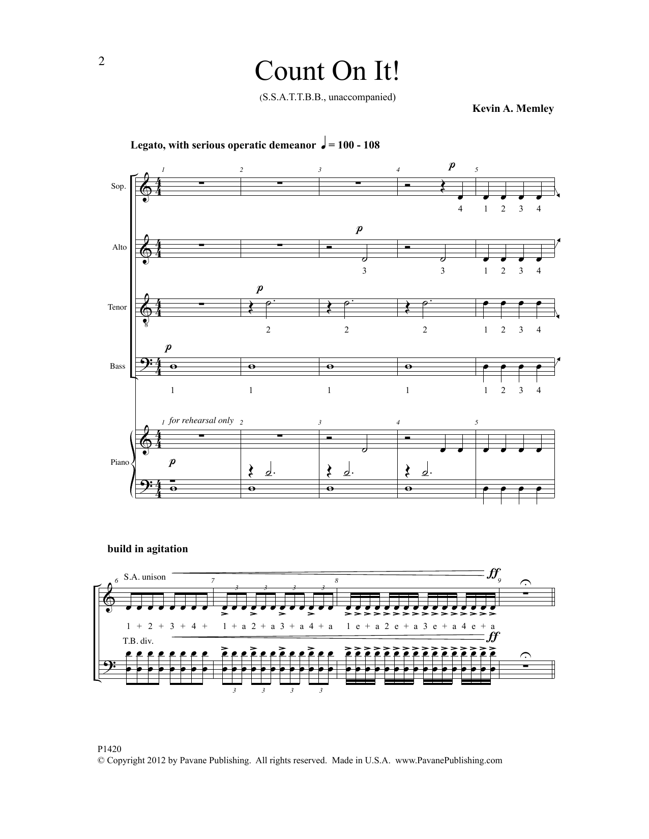 Download or print Kevin A. Memley Count on It! sheet music, chords and digital score arranged for SSAATTBB Choir. This Concert score includes 11 page(s).