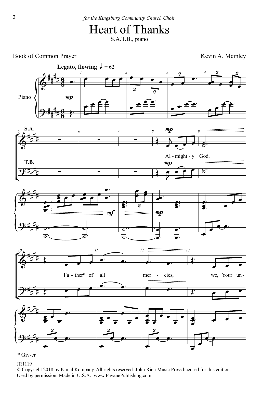 Download or print Kevin A. Memley Heart Of Thanks sheet music, chords and digital score arranged for Piano & Vocal. This Hymn score includes 7 page(s).