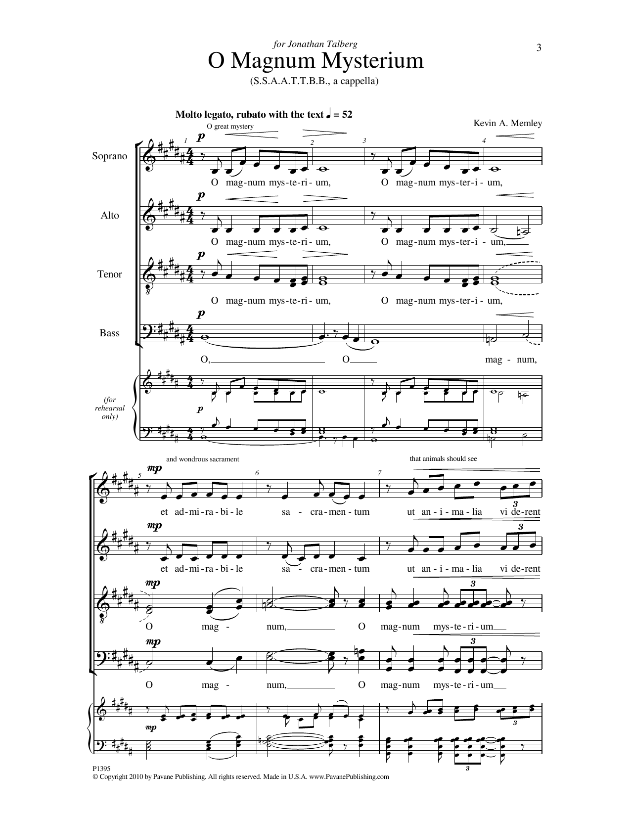 Download or print Kevin A. Memley O Magnum Mysterium sheet music, chords and digital score arranged for SSAA Choir. This Christmas score includes 10 page(s).