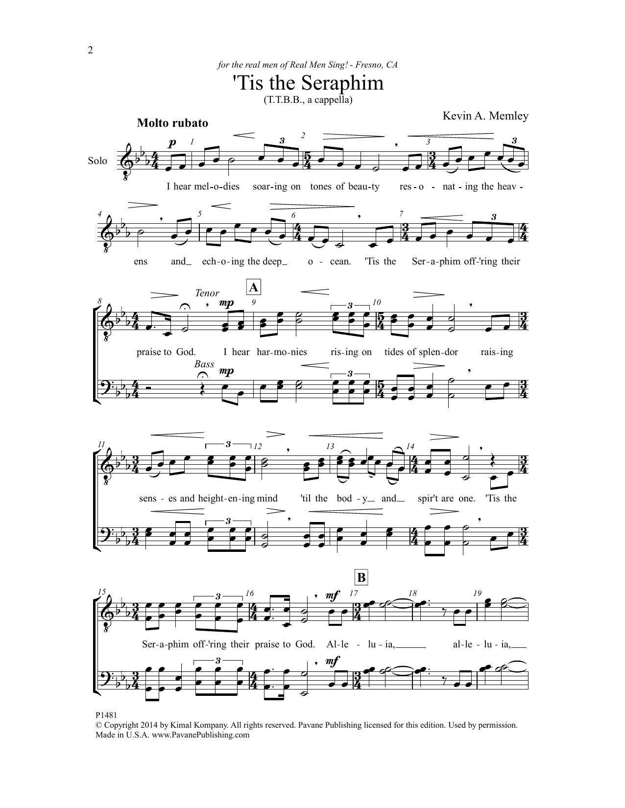 Download or print Kevin A. Memley Tis the Seraphim sheet music, chords and digital score arranged for TTBB Choir. This Concert score includes 3 page(s).