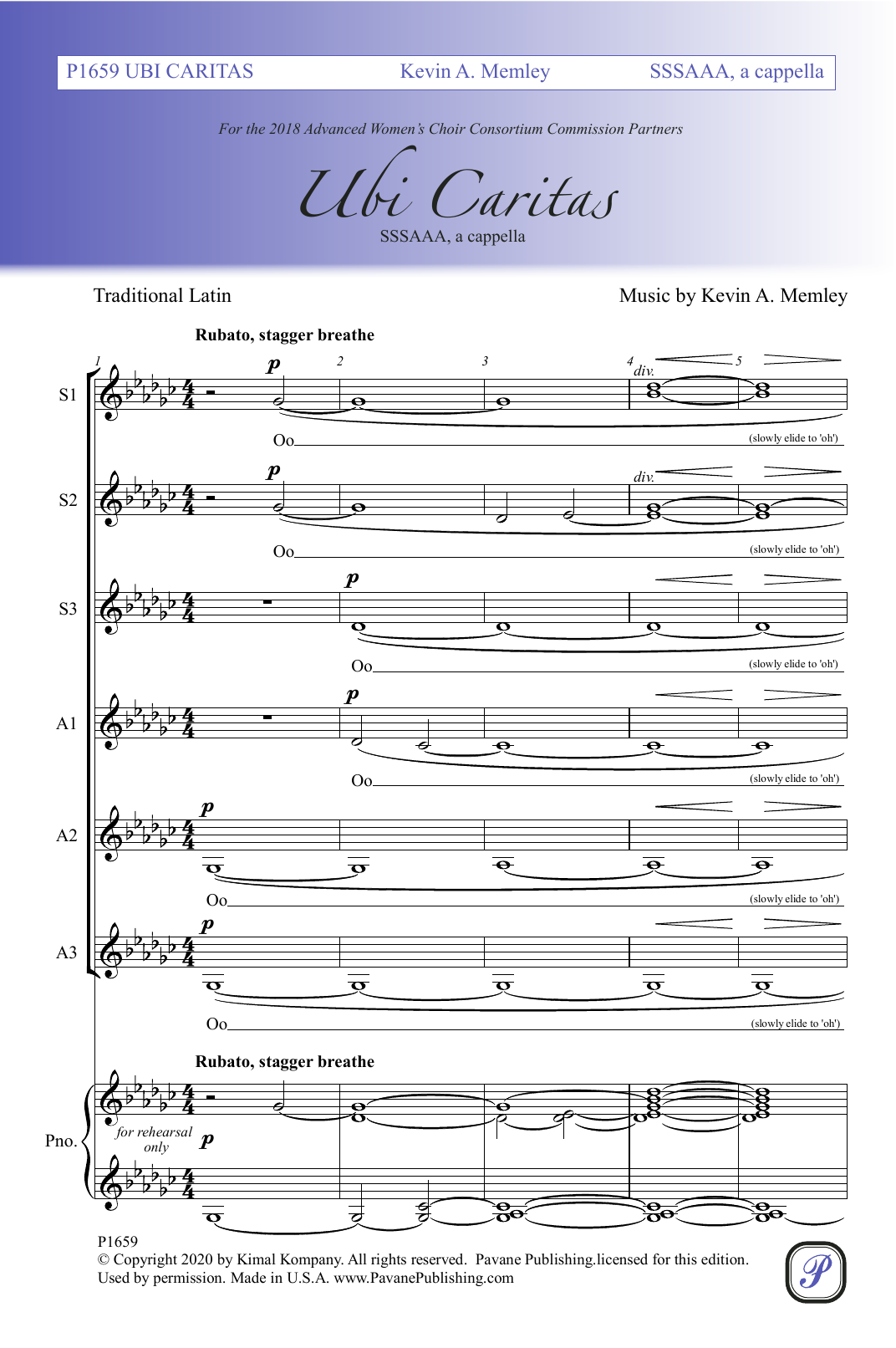 Download or print Kevin A. Memley Ubi Caritas sheet music, chords and digital score arranged for SSA Choir. This Concert score includes 16 page(s).