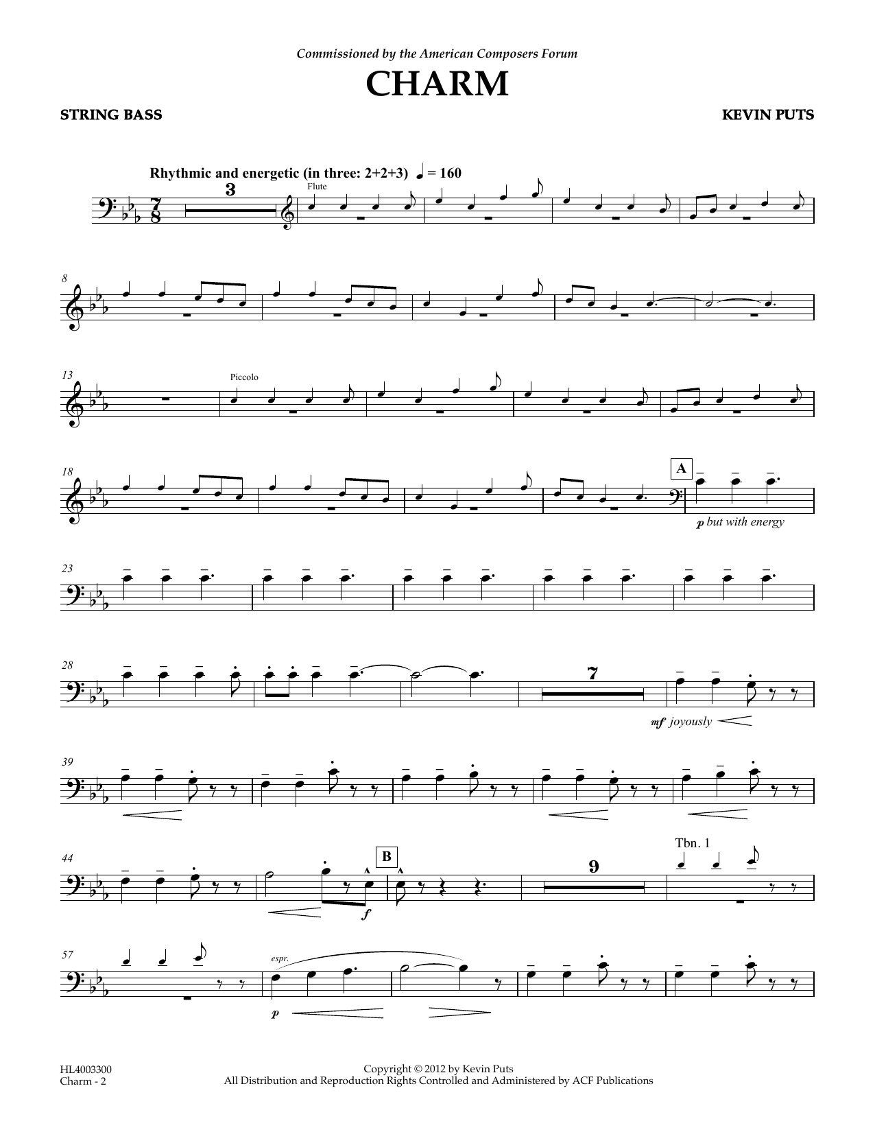 Download or print Kevin Puts Charm - String Bass sheet music, chords and digital score arranged for Concert Band. This Concert score includes 2 page(s).