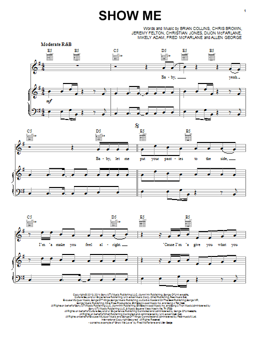 Download or print Kid Ink Featuring Chris Brown Show Me sheet music, chords and digital score arranged for Piano, Vocal & Guitar Chords (Right-Hand Melody). This Pop score includes 10 page(s).