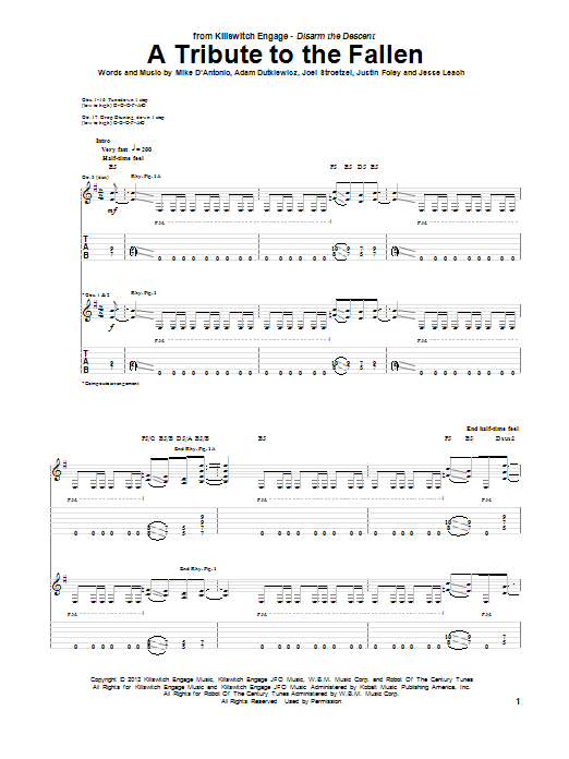 Download or print Killswitch Engage A Tribute To The Fallen sheet music, chords and digital score arranged for Guitar Tab. This Pop score includes 24 page(s).
