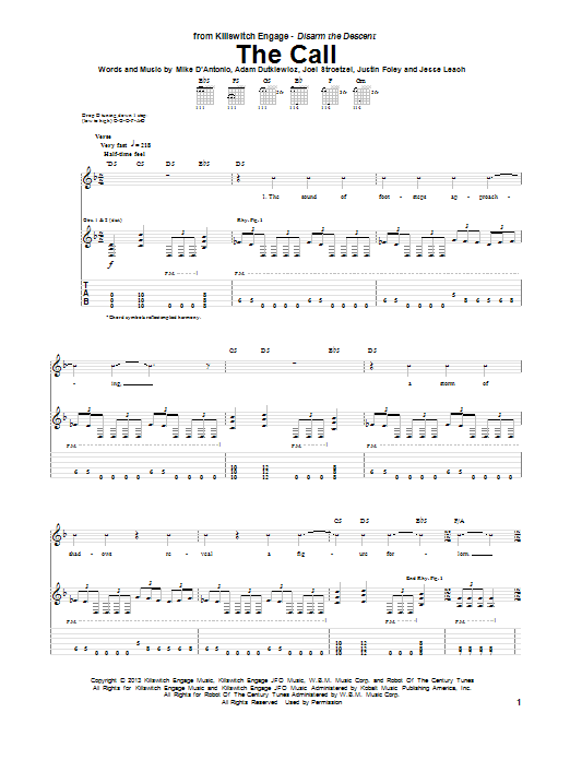 Download or print Killswitch Engage The Call sheet music, chords and digital score arranged for Guitar Tab. This Pop score includes 10 page(s).