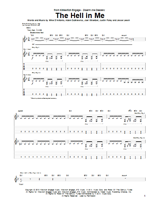 Download or print Killswitch Engage The Hell In Me sheet music, chords and digital score arranged for Guitar Tab. This Pop score includes 14 page(s).
