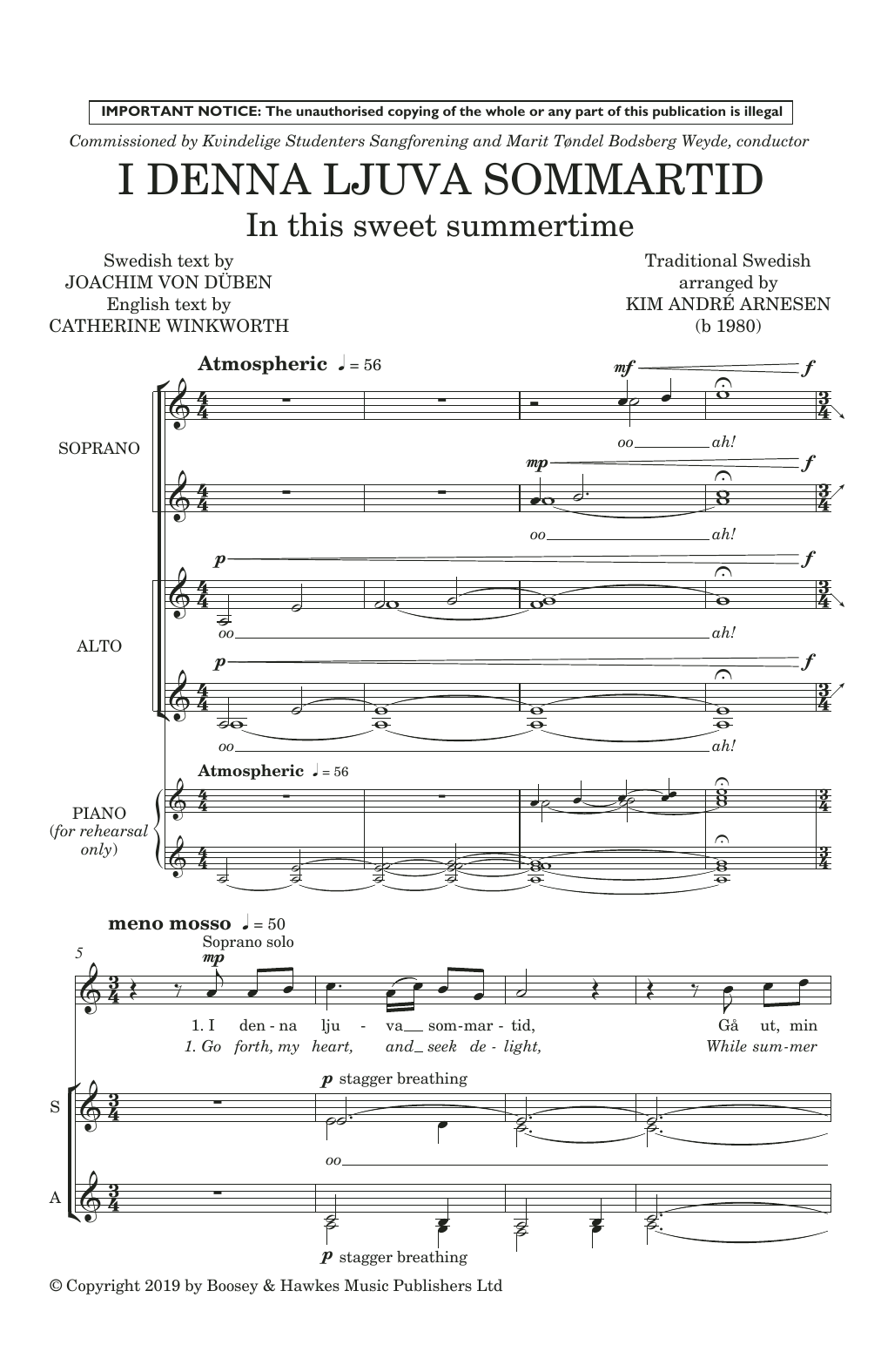 Download or print Kim André Arnesen I Denna Ljuva Sommartid sheet music, chords and digital score arranged for SSA Choir. This Concert score includes 11 page(s).