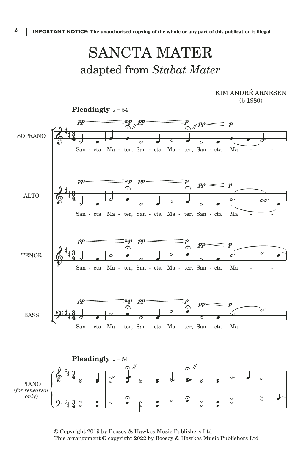 Download or print Kim André Arnesen Sancta Mater (Adapted from Stabat Mater) sheet music, chords and digital score arranged for Choir. This Concert score includes 8 page(s).