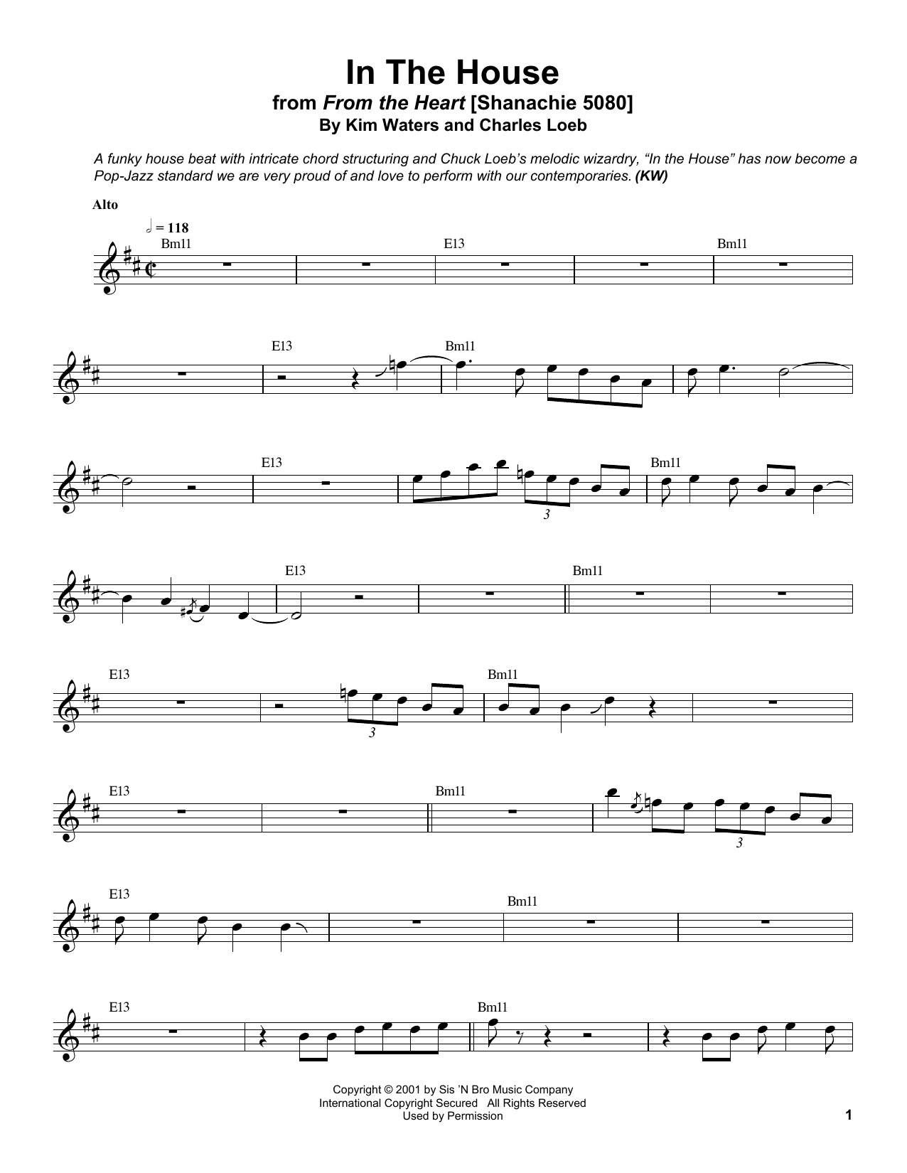 Download or print Kim Waters In The House sheet music, chords and digital score arranged for Alto Sax Transcription. This Jazz score includes 7 page(s).