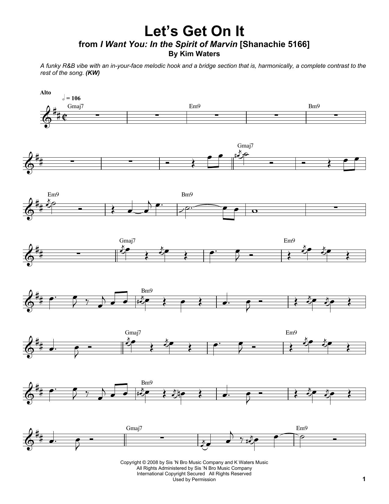 Download or print Kim Waters Let's Get On It sheet music, chords and digital score arranged for Alto Sax Transcription. This Jazz score includes 6 page(s).