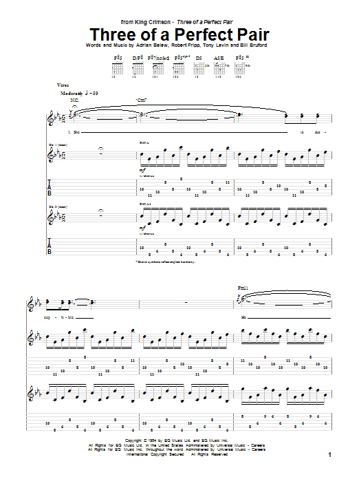 Download or print King Crimson Three Of A Perfect Pair sheet music, chords and digital score arranged for Guitar Tab. This Pop score includes 7 page(s).