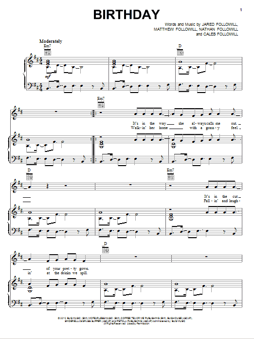 Download or print Kings Of Leon Birthday sheet music, chords and digital score arranged for Guitar Tab. This Pop score includes 8 page(s).