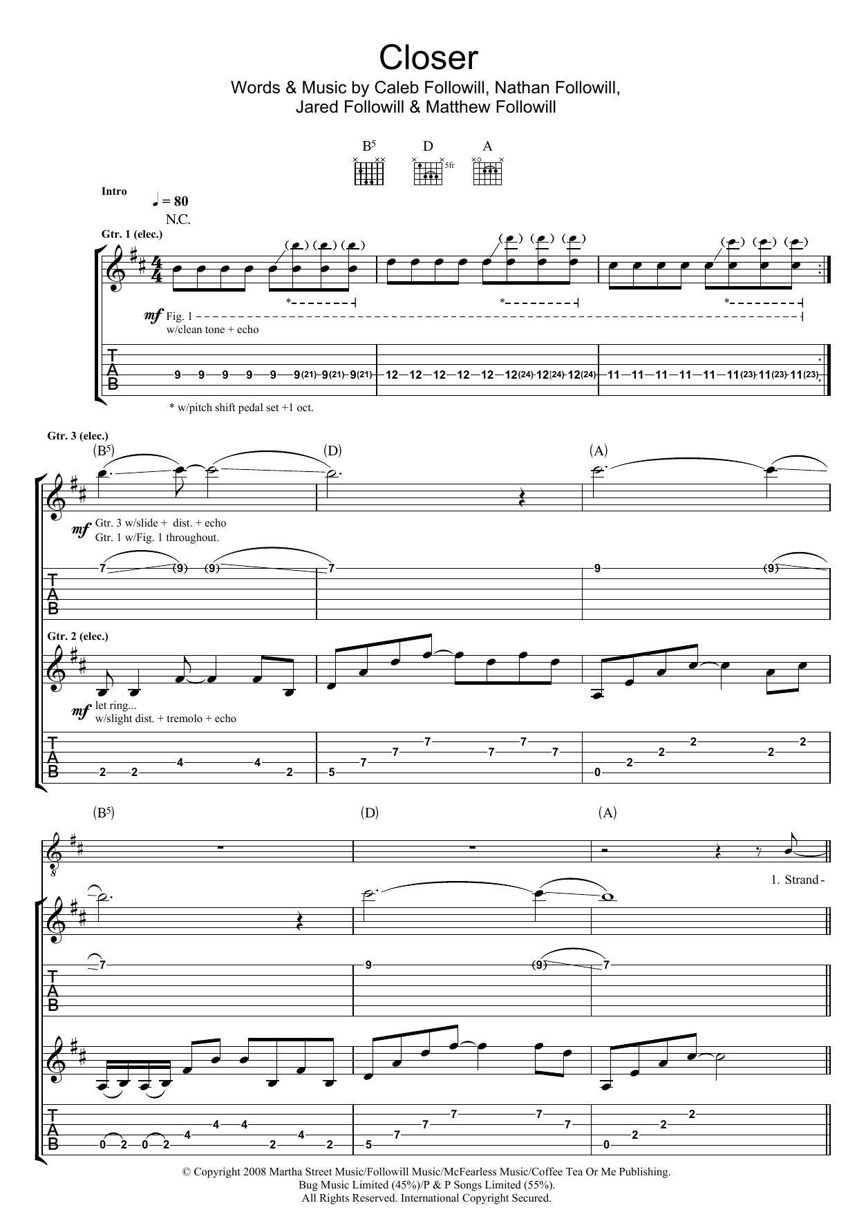 Download or print Kings Of Leon Closer sheet music, chords and digital score arranged for Guitar Tab. This Rock score includes 5 page(s).