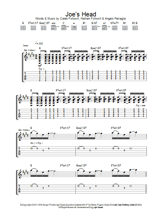 Download or print Kings Of Leon Joe's Head sheet music, chords and digital score arranged for Guitar Tab. This Rock score includes 7 page(s).