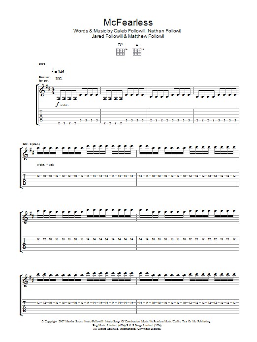 Download or print Kings Of Leon McFearless sheet music, chords and digital score arranged for Guitar Tab. This Pop score includes 6 page(s).
