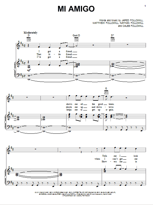 Download or print Kings Of Leon Mi Amigo sheet music, chords and digital score arranged for Guitar Tab. This Pop score includes 7 page(s).