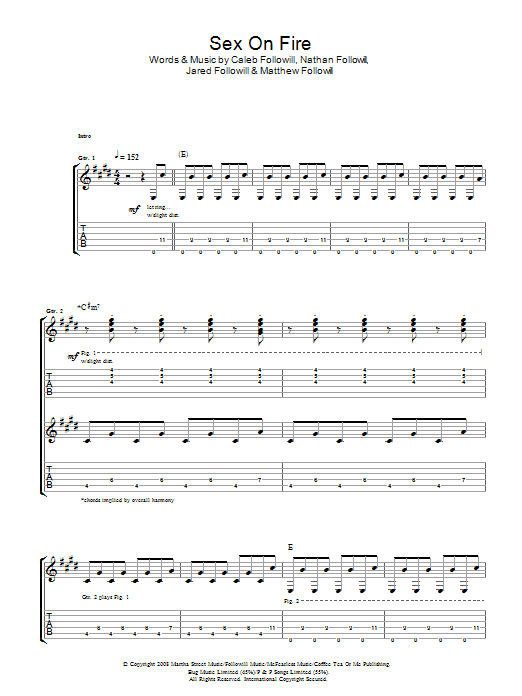 Download or print Kings Of Leon Sex On Fire sheet music, chords and digital score arranged for Piano, Vocal & Guitar Chords (Right-Hand Melody). This Pop score includes 8 page(s).