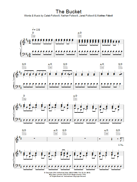 Download or print Kings Of Leon The Bucket sheet music, chords and digital score arranged for Guitar Tab (Single Guitar). This Pop score includes 5 page(s).