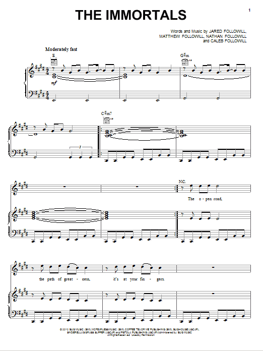 Download or print Kings Of Leon The Immortals sheet music, chords and digital score arranged for Guitar Tab. This Pop score includes 7 page(s).