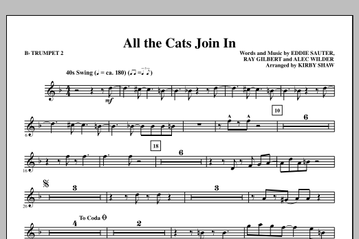 Download or print Kirby Shaw All The Cats Join In - Bb Trumpet 2 sheet music, chords and digital score arranged for Choir Instrumental Pak. This Jazz score includes 1 page(s).