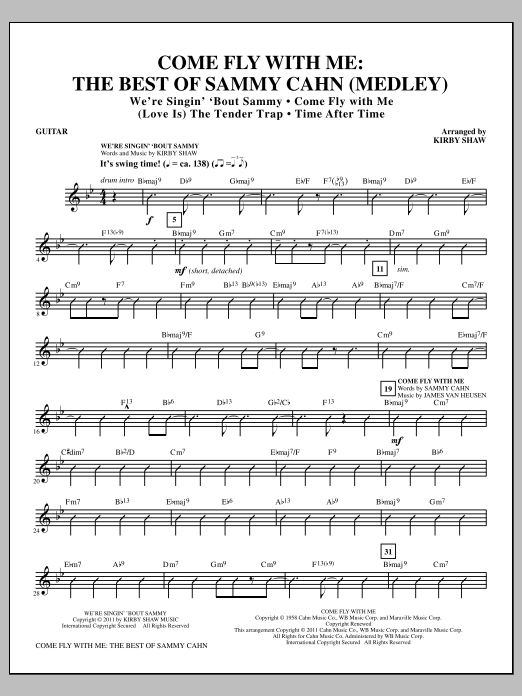 Download or print Kirby Shaw Come Fly With Me: The Best Of Sammy Cahn - Guitar sheet music, chords and digital score arranged for Choir Instrumental Pak. This Jazz score includes 5 page(s).