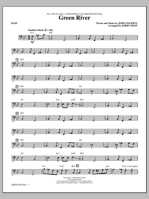 Download or print Kirby Shaw Green River - Bass sheet music, chords and digital score arranged for Choir Instrumental Pak. This Pop score includes 2 page(s).